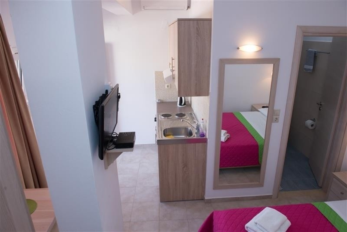 Small hotel located a stone's throw from the heart of Matala, the lively area, and the main beach. I received a very warm welcome. The room is small, but it's more than enough for sleeping. The outdoor courtyard is very pretty. Breakfast is available. The establishment has private parking, making arrival and settling in easy. One small drawback is the soundproofing. You can easily hear people coming home late and making noise.
